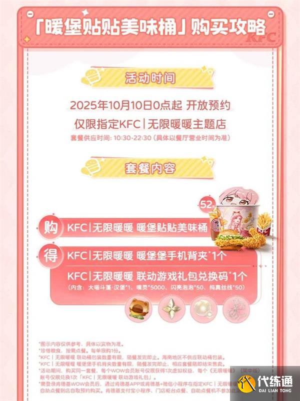 活动期间,玩家可在全国肯德基门店购买限定联动套餐,获得对应周边与游戏礼包: