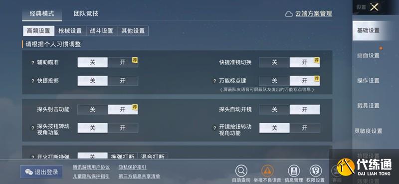 基础设置方面,建议在高频设置中关闭辅助瞄准功能,开镜探头设置为长按模式,同时关闭探头转动视角。枪械设置中需要开启左手开火按钮,陀螺仪选择总是开启状态。战斗设置中将探头模式调整为长按,并关闭探头自动开镜功能。画质方面选择流畅即可保证操作流畅度。