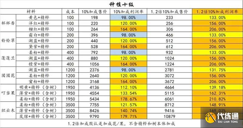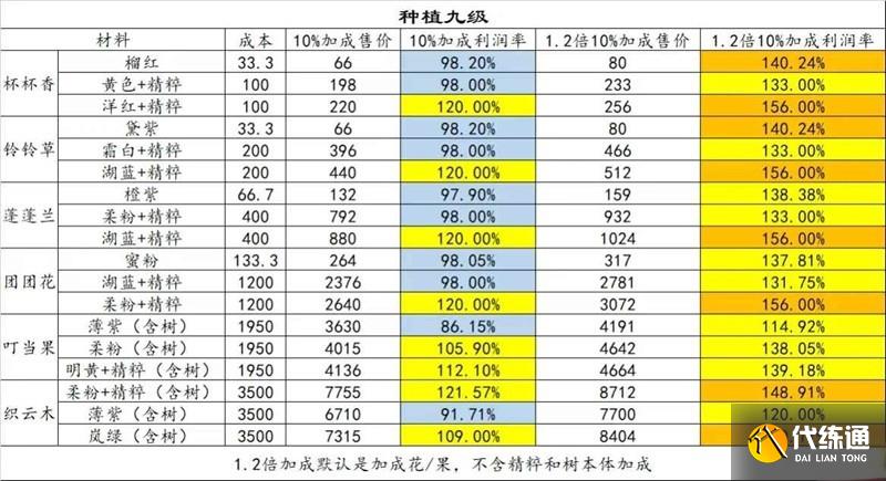 为种植9级和10级的收益情况,总体售卖思路与上周一致