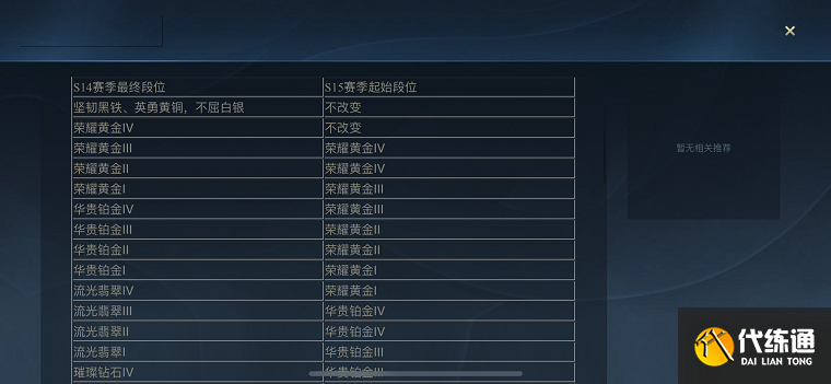 - 基础段位不变:黑铁、黄铜、白银和黄金四个基础段位在赛季切换时不会发生改变,即玩家在新赛季会保持原有的段位。