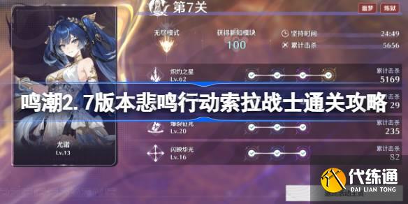 鸣潮2.7版本推出的悲鸣行动活动共分为7个关卡,逐步解锁。完成第7关噩梦难度后将开启炼狱难度,这才是正在挑战的开始,那么想要通过这个该怎么进行攻略呢,下面就让我们来看看鸣潮2.7版本悲鸣行动索拉战士通关攻略。