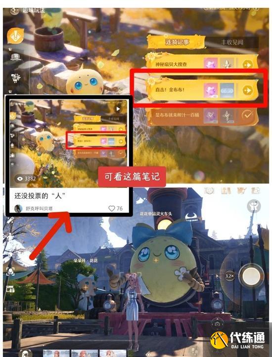 逸事任务【直击!金布布!】按照指引做任务,和胜出的朵朵开·花花合影。