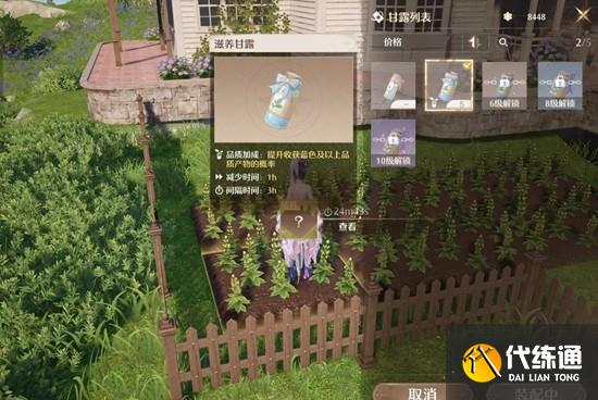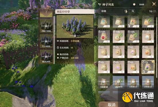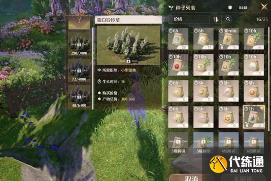 在种植能力达到四级后,解锁玲玲草跟滋养甘露,玲玲草价格二百,生长时间一小时,滋养甘露价格一百,减速一小时,白色收支持平,只要刷到蓝色跟紫色就赚了