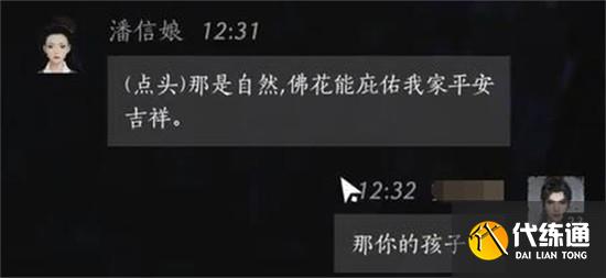紧接着,玩家可继续提出“那你的孩子呢。”这一问题,进一步揭示潘信娘背后的家庭背景与情感纠葛。此句承上启下,连接她对信仰的执着与其子女之间的关系,使对话更具叙事张力。