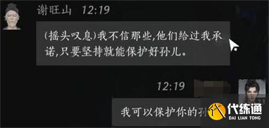 接下来的对话流程依次为:在玩家说出“你可知他们是江湖骗子”后,谢旺山会表现出犹豫与挣扎的情绪。此时剧情将逐步揭示他孙儿被卷入江湖纷争的背景,这也是燕云十六声世界观下普通百姓与武林势力交织的一个缩影。