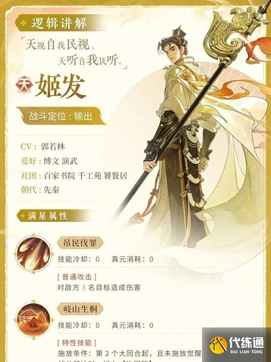 忘川风华录姬发技能是什么 姬发技能效果介绍