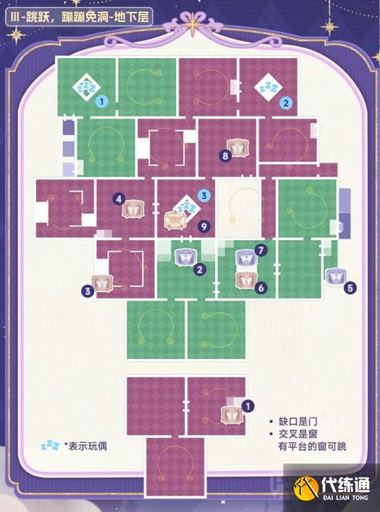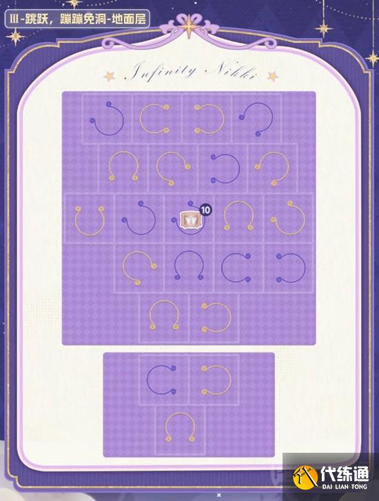 第三个迷宫主题为跳跃挑战,机制围绕“蹦蹦兔”展开。玩家需要利用特定平台进行跳跃移动,部分区域设有隐藏洞穴,但可通过跳跃绕过。宝箱位置设置在高台之上,需通过连续跳跃抵达,注意观察平台间的距离和落脚点。
