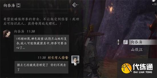 整个对话过程无需额外道具或任务进度支持,只要玩家抵达向吞海所在位置并完成据点清理即可触发。这种设计使得燕云十六声的任务链更加自然流畅,增强了世界的真实感。向吞海作为清河地区的重要信息节点,其对话内容也可能影响后续任务走向。