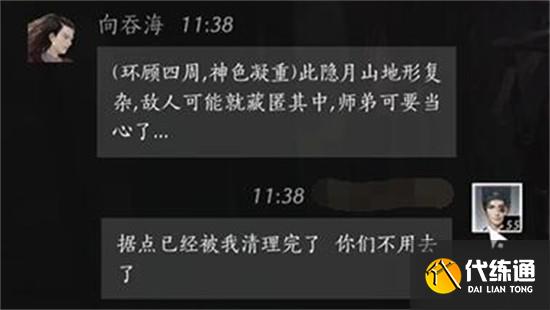 玩家在与向吞海对话时,需按照特定顺序选择回应内容。首次对话时,玩家应先选择“据点已经被我清理完了 你们不用去了。”这句话将作为对话开启的关键语句,触发向吞海的回应。此步骤是燕云十六声中该互动流程的必要起点,不可跳过或更改顺序。