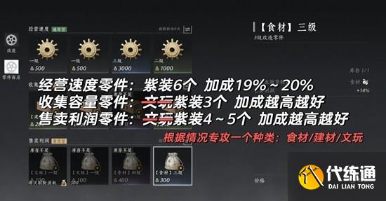 日常食材、建材紫装+20%可以购买。