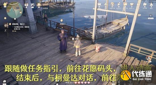 传送到 镇长宅邸前 锚点,跟随指引到心愿码头,进入动画;