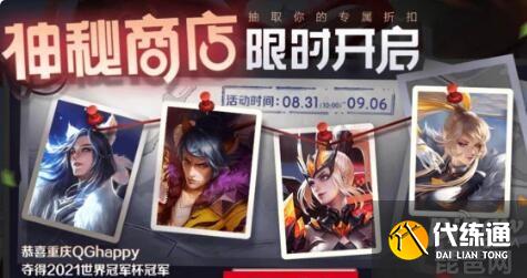 最近开启的这期神秘商店,是2021世界冠军杯重庆QGhappy夺冠庆祝活动,官方特别开启了为期一周的神秘商店时间,从8月31日持续到9月6日,而中秋节假期是从9月19日到9月21日,也就才间隔了半个月时间,所以是不会再推出神秘商店活动。