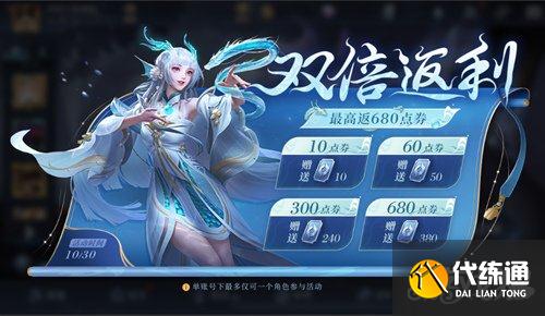 “双倍返利”活动已开启,单个账号最高返680点券!活动仅限10月30日当日。