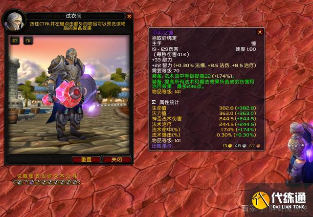 审判之锤是T6副本小怪掉落的一把单手锤,主属性为33耐力和22智力,绿字属性为22点法术命中和236点法术强度。