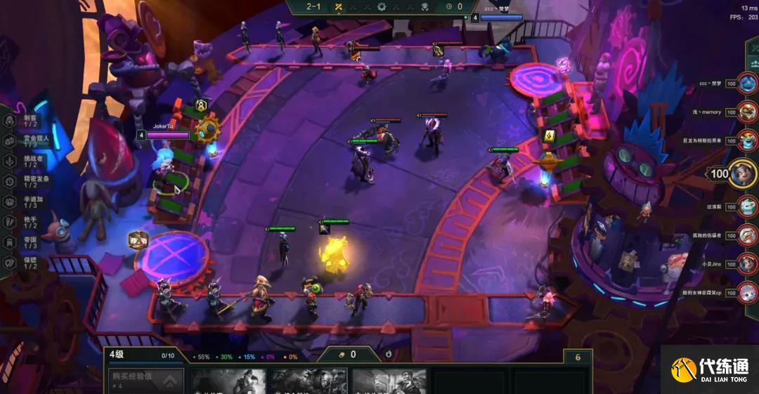 1、开局金色以上卓尔不群可以玩,前期三费拼多多连胜