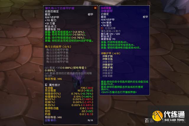 S3两件套的效果是提升35点韧性,加上胸甲和裤子的韧性,一共可以获得81点韧性加成。按照60点防御等级=39.4韧性=1%免疫暴击来计算,81点韧性大概相当于123点防御等级了,因此在免疫暴击方面是不用愁的。