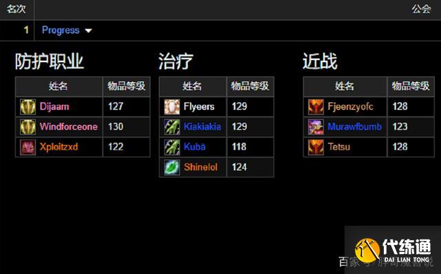 在此次毒蛇神殿的竞速赛中《Progress》公会一共安排了3名坦克职业,分别是两名防骑和一名野德,反而缺少了在野团中很常见的防战。