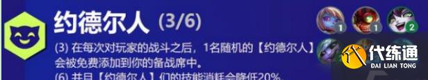 对局结束之后,会随机获得一个约德尔人的英雄,而且在6约德尔人之后,技能消耗也会降低20%。而且最重要的是,如果6个约德尔人全部三星,那每局比赛结束之后,都会获得一个邪恶小法师,而小法师作为一个五费卡英雄,在商城中是刷不出来的,三星的小法可以说是最强的五费卡了,一招清屏,视觉效果满分。