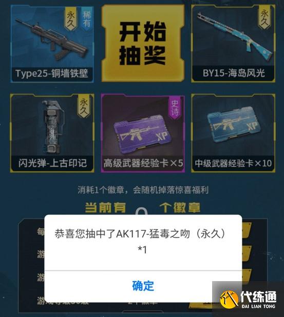 玩家通过收集徽章来进行抽取,就有一定的概率会获得ak117猛毒之吻。
