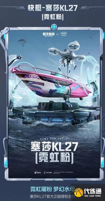 本次联名定制快艇载具皮肤以塞莎品牌“打破游戏规则”的经典KL27为设计对象。KL27拥有顶级的配速和超高稳定性,强壮有力的外形,是快艇的前沿代表;同时精致的内饰,更是处处显示塞莎得以风靡欧洲50多年的深厚设计和制造功底。