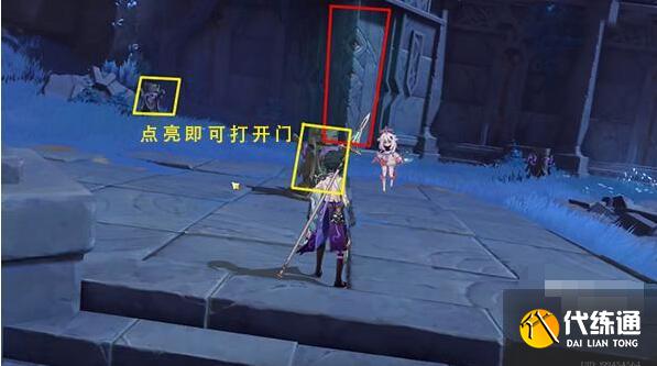 1、首先我们前往图中所示位置,到图书馆完成两个挑战,再激活雷元素方碑机关,即可打开后门。