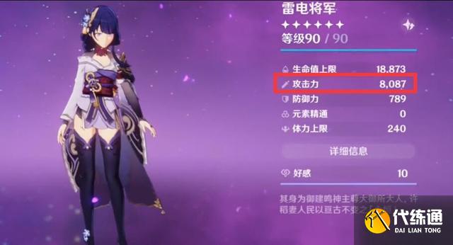 这样组合之后就能打造出一个8087攻击力的雷神,一下子就让我想到了玩家7000攻击力的申鹤和七七,两者都是比较不错的辅助,比如说七七,现在很多玩家都已经三命或者四命了,可见玩家对于七七的喜爱。咳咳咳说回这个8087攻击力的雷神,玩家牺牲了暴击率和暴击伤害,最终的面板是24%暴击+155%的暴击伤害,那么这样的雷神的大招能打出百万伤害吗?玩家用雷九万班的阵容做了一个测试。