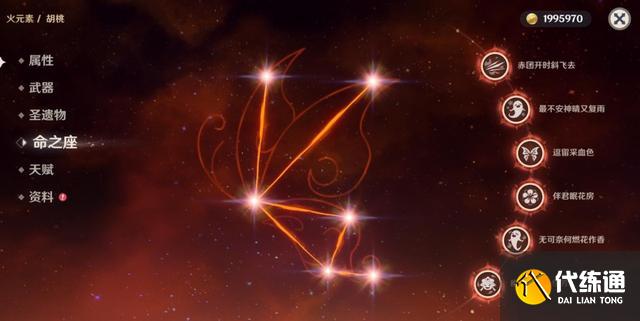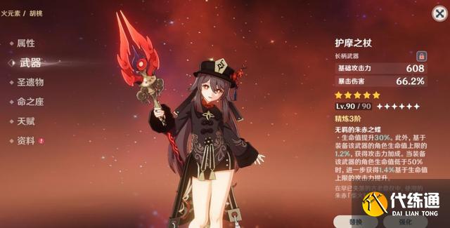 胡桃的E技能是她的核心,主要是开E后能获得高额攻击力提升,并且与胡桃的最大生命值挂钩,因此胡桃是为数不多堆生命值的主C,一般3.3万左右就是毕业胡桃的生命值面板,开启E技能后攻击力在4000-6000不等,一般氪金大佬还会给胡桃搭配5阶的护摩之杖,配合满命的效果,胡桃能够让大世界和深渊的魔物感受往生的过程,不过胡桃需要打出百万伤害,自然少不了重要的前提条件【元素反应】