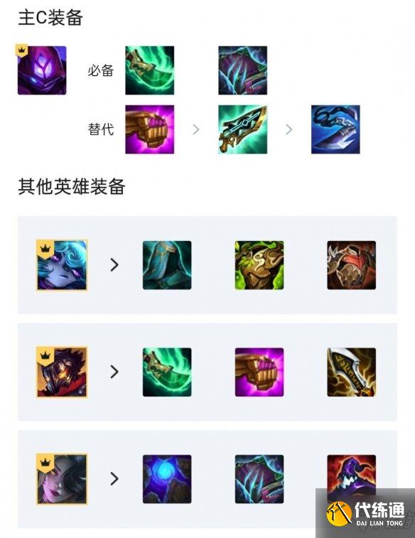 开局优先拿腰带水滴,前期可以留约德尔牌打工连败开,或者保镖配合黑魔法师带装备打工连胜开,优先做蚂蚱鬼书青龙刀和薇古丝前排装,(3-2)升6人口D牌,D出4黑魔法师3约2白魔,有2星蚂蚱和薇古丝就可以稳定上8人口,基本可以保血连胜。这里可以选择直接上8去找维克托和其他四费卡质量,如果中期血量稳不住,也可以7/8人口追3星3费卡,若经济允许下也可以追三星玛尔扎哈和薇古丝,之后上人口补齐羁绊。根据拿到的海克斯加强进行阵容调整和强化,黑魔法师之心或转职上8黑魔,辛迪加之心或转职可以上5迪加换狐狸主C,后期有机会上九或者羁绊比较满,可以上希尔科辅助,会起到很好的强化c位作用。