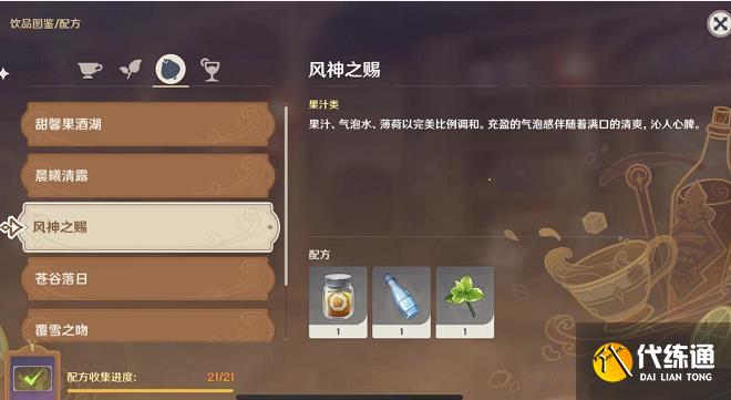 原神曲生酌微梦果汁类饮品风神之赐配方介绍