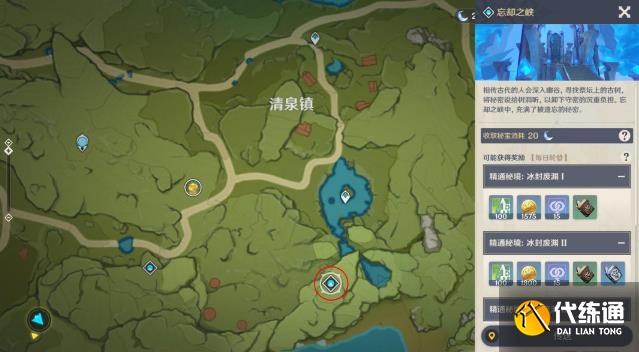 下图为「忘却之峡」的具体地点,位于蒙德地区。
