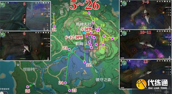 3、玩家可以按照下图提供的的路线前往采集