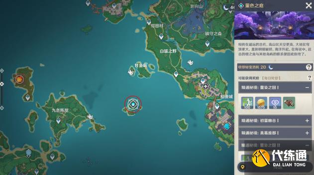 下图为「堇色之庭」的具体地点,位于稻妻地区。