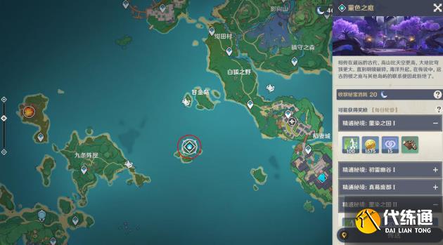 下图为「堇色之庭」的具体地点,位于稻妻地区。