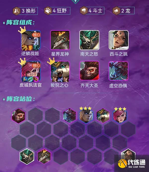 羁绊效果:3换形、4狂野、4斗士、2龙