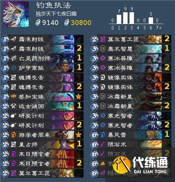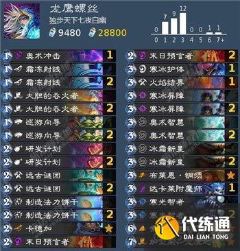 这套卡组的实现斩杀算是比较稳的一种了。首先就是将技能伤害叠到可以触发龙鹰的程度,然后使用铜须卡德加以及龙鹰的组合召唤出4个炎魔之王。最后就是利用射线将卡德加杀死,上附魔师。这样一来回合结束就可以造成64点的伤害。卡组对于费用要求还是非常高的,玩的时候注意保留一张饼干用于启动。