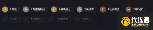 4强袭战士、1宿敌、4海克斯科技(可凑齐6海克斯科技)、2执法官、2格斗家、1社交名流。