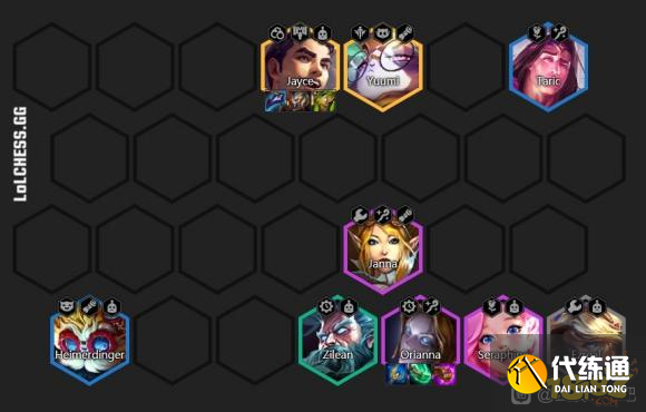 在s6双城之战中,全新大型羁绊「发明家」带着他们的机械造物加入了游戏,让科技的光辉照遍整个云顶。发明家阵容图如下: