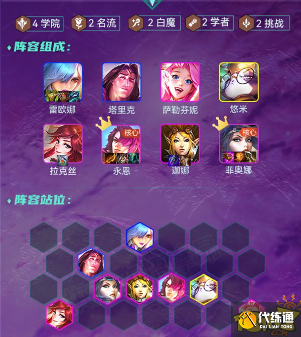 学院永恩是现在主流的上分阵容,通常是4学院或6学院搭配2挑战看情况上白魔法与社会名流,阵容看似需要的高费卡较多,但只要永恩能早二星,吃分就比较稳定。运营难度不高,比较简单无脑。