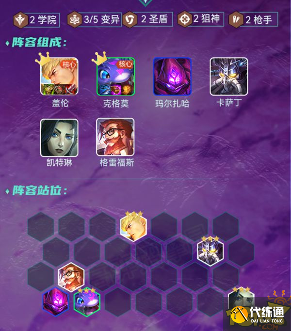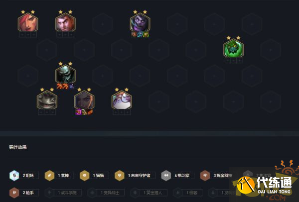 阵容6人口在大嘴与盖伦均三星小成后,阵容才开始强势,中后期在给大嘴找5变异,只要不遇到非常克制的维克托主C都能有一个非常好的名次。