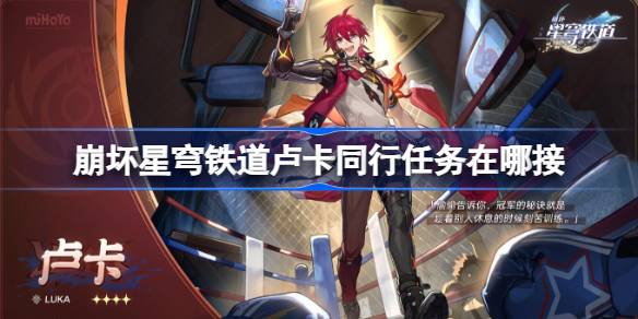 崩坏星穹铁道1.3版本即将正式更新,新版本将会推出新角色卢卡,很多小伙伴想知道崩坏星穹铁道卢卡同行任务在哪接,现在小编带来了崩铁卢卡同行任务接取方法,一起来看看吧。 崩坏星穹铁道卢卡同行任务在哪接 卢卡同行任务「我的挚爱,我的血肉」 下层区的搏击冠军卢卡回到了磐岩镇,他正在筹备一场试炼… 开放时 阅读全文...