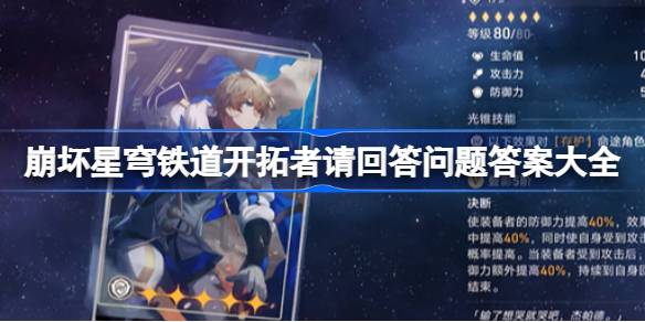 崩坏星穹铁道开拓者请回答具体答案是啥?崩坏星穹铁道开拓者请回答怎么快速过关?崩坏星穹铁道里面很多人都在参加这个开拓者请回答的玩法的哦,里面有很多的问题是需要我们去回答的,每个题目的答案要是知道了就会过关很快了,要是不会的话下面一起来看看吧! 1、银狼身上到底有多少个创可贴?答案:【2个】 2、开 阅读全文...