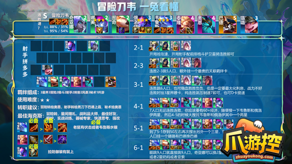 冒险刀韦是一套吃鸡率很高的阵容,那么金铲铲之战冒险刀韦怎么玩?下面就由小编给大家带来金铲铲之战冒险刀韦阵容攻略,希望能给大家带来帮助。 金铲铲之战冒险刀韦阵容攻略 【阵容介绍】 1、2-1:开局抢攻速,开局射手配前排格斗护卫重骑连胜即可。 2、2-3:连胜2-3跳5人口,额外挂一个最贵的关联羁 阅读全文...