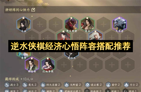 在《逆水寒》自走棋玩法逆水侠棋中,经济管理往往决定了中后期的战力走向。本期攻略小编将带来一个当前版本强度极高的经济心悟思路,让你在资源积累上快人一步,感兴趣的玩家欢迎来看看。 逆水侠棋经济心悟阵容搭配推荐 一、核心心悟:同心协力 效果:根据激活羁绊数量额外获得金币。 特点:羁绊越多,经济增长越快 阅读全文...