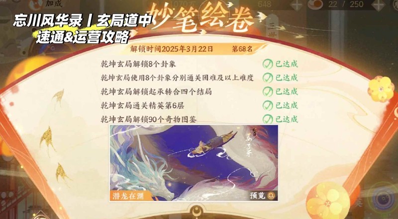 忘川风华录中使君每次开启乾坤玄局玩法,无论失败或者成功,都会进行玄局结算。根据本局难度和达成层数,可以获得该进度及其以下进度得全部奖励,那么这个玩法如何冲榜呢?小编为你准备了一份攻略,一起来看看吧~ 本期攻略主要关于开局减益,路线选择和局内策略。 【关于名士与猫】 我们只用吕雉,班昭,蒲松龄,冯 阅读全文...
