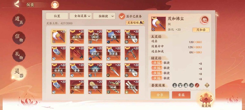 忘川风华录每一位名士的主要属性都不相同,玩家根据关卡的特点,以及名士主要属性的匹配度,进行出战阵容、名士灵气相关的搭配。那么游戏中名士的灵器如何洗出4敏呢?小编为你准备了一份攻略,一起来看看吧~ 主播包里零零碎碎>24敏捷的武器鞋子,截止到2025.9.28合计是28件 1.对于一个配速完美的阵 阅读全文...
