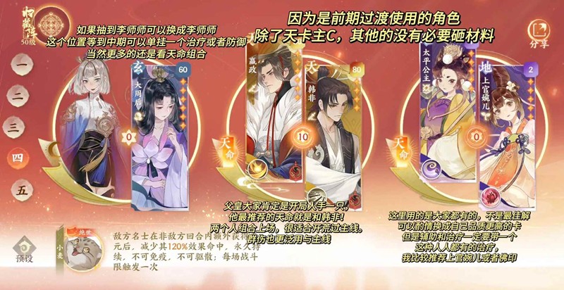 忘川风华录中每一位名士的主要属性都不相同,玩家根据关卡的特点,以及名士主要属性的匹配度,进行出战阵容、名士灵气相关的搭配。那么游戏中嬴政与李斯这两位名士应该怎么养成来使用呢?小编为你准备了一份攻略,一起来看看吧~ 政斯天命中,嬴政李斯会对持有护盾的名士造成伤害分别提升30%和15%,所以装备选用 阅读全文...