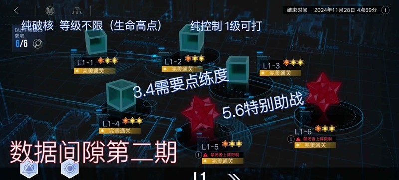 无期迷途进入战斗前,玩家可以上阵至多6名禁闭者在任意可放置的格子上,可以查看敌方数量及情报、入侵口及行进路线、神智值、调度指令和通关条件,那么活动数据间隙1-1至1-6应该怎么打呢?小编为你准备了一份攻略,一起来看看吧~ 1-1没啥,流血队加源津,怪有点小肉,最需要练度的一关,其他队应该也能打, 阅读全文...