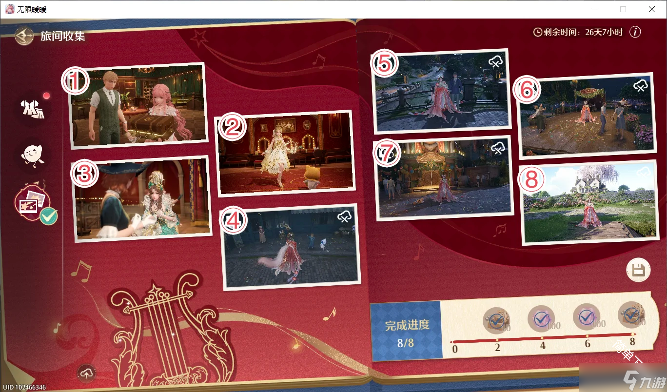 无限暖暖音乐季中的旅间照片123跟随着任务解锁,在风物任务一幕无终的咏歌中收录。4在支线见闻任务于人群外的特别演出中获得,5在支线见闻任务致未来的重逢中获得,6在镇长宅邸前舞台拍照,7在狸猫俱乐部拍照,8在家园码头传动点和小屋合照。具体的位置方位收集内容见下文详情! 阅读全文...