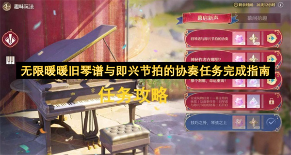 在《无限暖暖》音乐季中,“幕启新声"玩法中有个名为旧琴谱与即兴节拍的协奏的任务,部分玩家不清楚这个任务到底怎么做,所以下面小编就为大家整理出了无限暖暖旧琴谱与即兴节拍的协奏任务完成指南,希望能够帮助到各位。 无限暖暖旧琴谱与即兴节拍的协奏任务完成指南 1、前往搭配师协会前锚点或镇长宅邸前锚点,点 阅读全文...