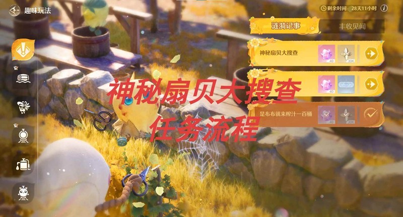 无限暖暖游戏中玩家将操作暖暖,作为一名搭配师与大喵一同踏上新的冒险旅程。玩家可以在奇迹大陆中通过各种各样的方式获得不同风格的精美套装。那么丰收季趣味玩法,神秘扇贝大搜查任务应该怎么完成呢?小编为你准备了一份攻略,一起来看看吧~ 完成前置任务:是布布就来榨汁一百桶 后开启 我们传送到 涟漪之窖旁 阅读全文...